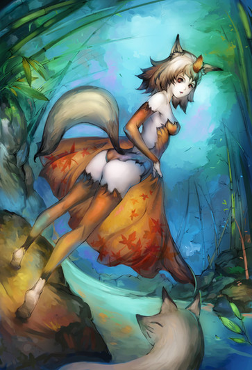 wow, this looks so awesome ! I love the way you draw and color it x3! she is so fluffy x3! the background is great too