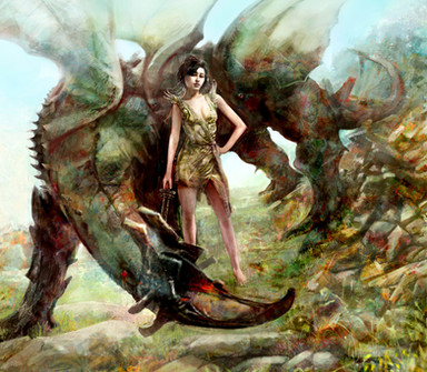 Nice work. Superb shading and tinting, as well. Just curious about her gold dress/skirt when she has an obvious taste for blood. The color does, however, brilliantly attract the viewer to the subject. Great job, nonetheless!