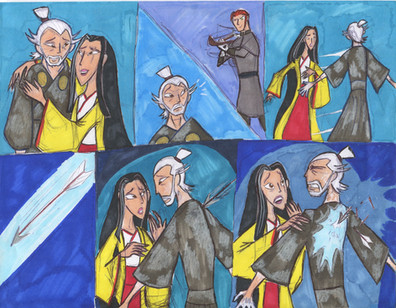 Update: I took one look at my work as it was, and I wasn't satisfied with how I made Hanzo's philtrum (upper lip) lacking in facial hair. (What was I thinking?) So I fixed the third and sixth panels. In the least, I could make him identifiable as Hanzo.