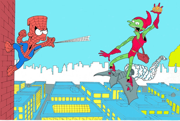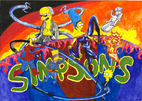 I just draw simpsons characters to replace marvel heroes from this original paint [link]it was a requested.