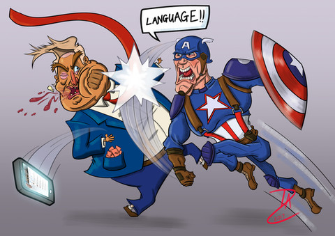 el capitan america namor craneo rojo la antorchahumana XD pero quien es el de la bandera?