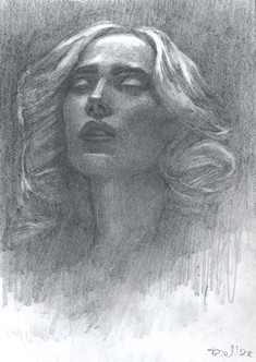 The original submission of this freehand pencil drawing drawn during the early 90's was lost during the crash of the Escher server several months back.I took the opportunity to do some touching up of the original image using my Intuos tablet- adding some details to certain portions of the hair while removing other portions and darkening key shadows.