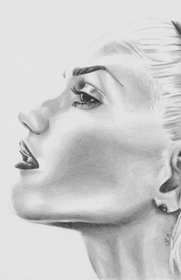 This is really good I must say. I'm impressed with how your proportions worked out for this picture. I have a lot of difficulty with the angles of the head like that. The contours of her face or well done as well. I love how soft the hair is against the skin, but bold enough to stick out of the white background. This is a lovely picture over all.
