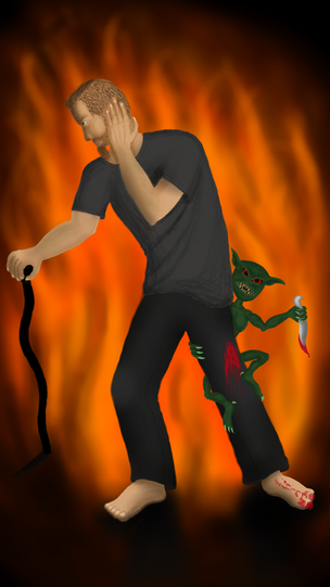 That'll teach that Orc not to mess with you! Also, you're missing something that would have made this even more manlier and badass. FUCKIN' BODY HAIR!!