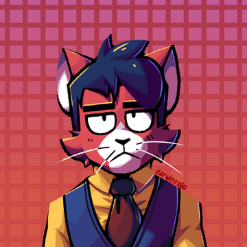 #digitalart #originalcharacter #cat #cartoon #feline #bust #frontview #furry #fursona #icon #krita #oc #pfp #red #render #yellow #yelloweyes #kritaartwork