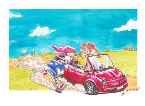 OutRun concept feat. Amy, Vanellope, Ralph and Sonic.This drawing represents the speed, the races and ofcourse: a great bunch of characters n_n.