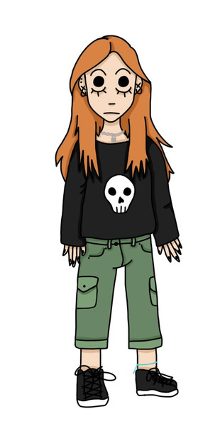 Personality- sarcastic, intelligent, has a dry and dark sense of humor, easily annoyed, stubborn, witty, relaxed but serious, sleep-deprived, unintentionally edgy, aggressive, creative, focused, patient, careless about her appearance, decisive, introverted, pessimistic, tries to be organized, honest, low-energy, independent, nerdy, open-minded and usually flexible, practical, serious, confrontational,