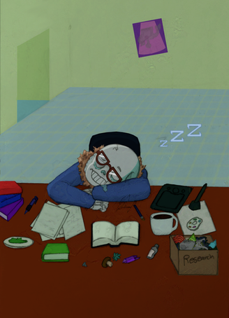 Awww, how cute! Nice job with drawing his books, by the way, they look great.