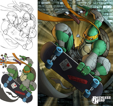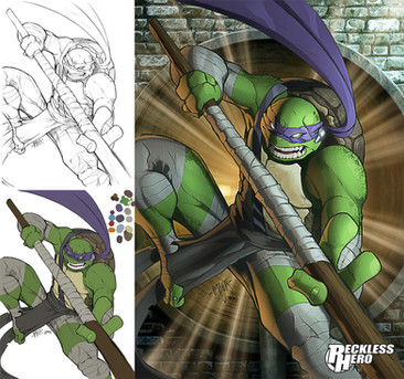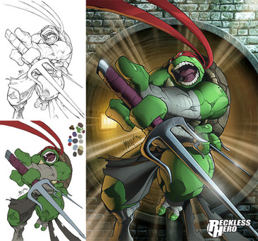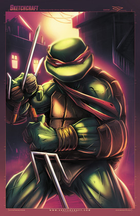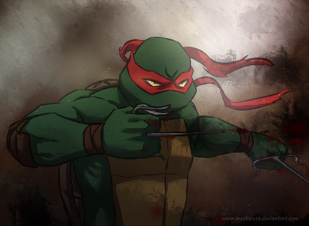 Raphael from TMNT, inked lines, colouring done in Photoshop CS3 with Intous 3.Here are the others in the series: