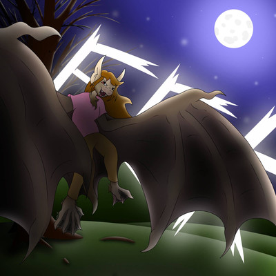 #bat #crescent #dusk #falling #forest #human #moon #transformation #tree