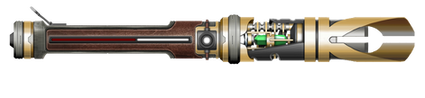 I looks like a more native version of Anakin's second saber. Or Luke's first. I say native because of the form fitted handgrip and the curvature of the blade shroud. Love it!