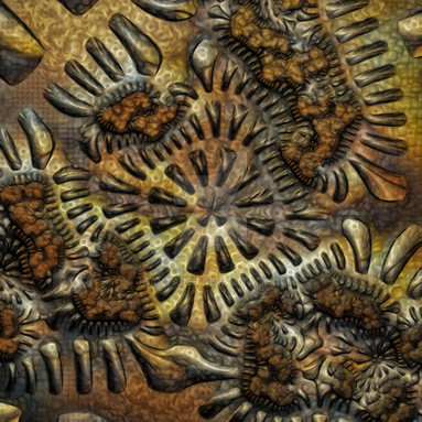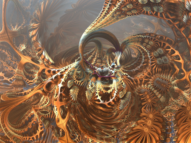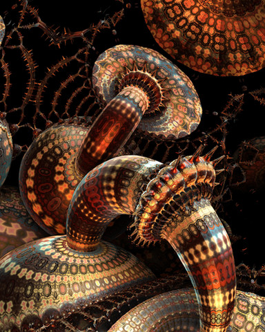 Made with Mandelbulb 3D. A tweak of parameters from ChuckF33 that were a tweak of Rowratty's params of his "Triffidium" fractal. I'm embarrassed to say that I turned his lovely flowers into a pile of ugly scrap metal with my tweaking...Related content