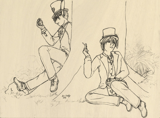 I love those hats! As for the image, I had some issues with the characters when I was drawing them, I originaly intended to get the picture done fast, so I did the line work at lightning speed (for me anyways) and when the date got pushed back, I couldn't bring myself to redo the linework...sigh. I think the guy on the right is the one I'm least pleased with. I didn't do a preliminary sketch either, so that may have been another issue. Thanks so much for the suggetstions and comments, and for stopping by!!