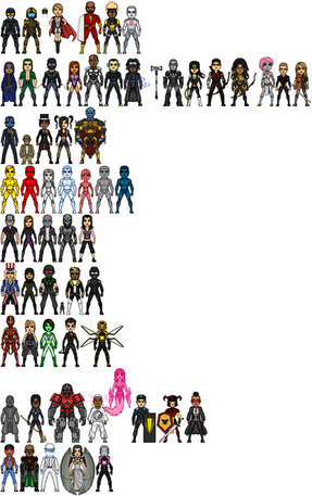 Tenth Row: Tempest, Terrific, Trickster, Void, Voodoo, Vundabar, Warblade, Weather Wizard, Wonder Girl, Wonder Woman, Zatanna, Zealot, Zoom.