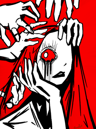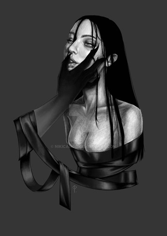 #black #digital #fear #girl #red #ribbons #tapes #white #digitalart #digitalartwork #digitaldrawing #digitalillustration #digitalpainting #girlfemale #ribbongirl #tapedmouthshut
