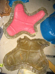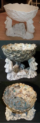 4. (Not shown) Sprayed pieces are then placed into cylinder mold (investment) made of chicken wire and tar paper. Thicker mix of plaster and sand is then poured/filled into the mold .