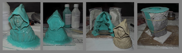 A question: in the first stage there, when you've got the red wax around the sculpture (for the air vents, yah?) do you sculpt the subject out of clay and then pour that wax over and around it? How do you end up with an end product that doesn't have metal cast into where the wax pillars were too?