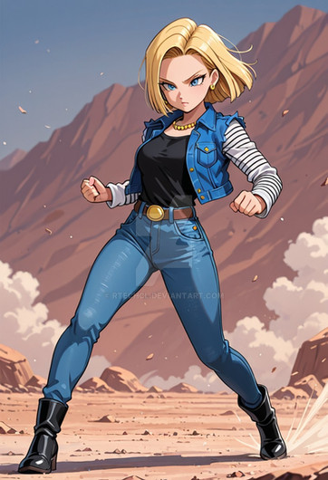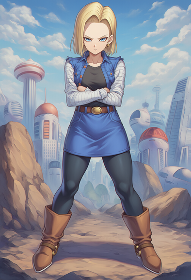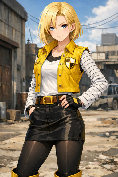 #android18 #beltbuckle #blackshirt #blondehair #blondehairedgirl #blueeyedgirl #blueeyes #bluejacket #blueskirt #denimjacket #earrings #largebreasts #longsleeves #pencilskirt #shorthair #shorthairedgirl #brownbelt #croppedjacket #widehips #denimskirt #android_18 #ankleboots #wide_hips #large_breasts #blackpantyhose #sleevelessjacket #partedbangs #novelai #novel_ai