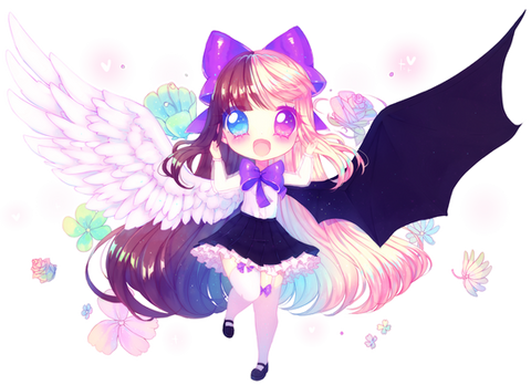 Chibi commission forAhh I love the colours, they are so pretty and popping! She was fun to draw too! Hope you like it!