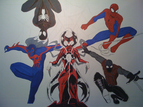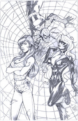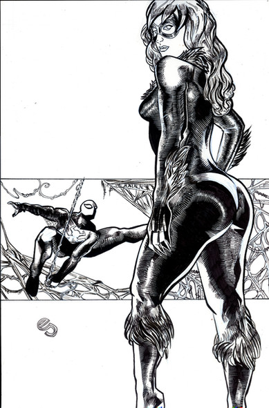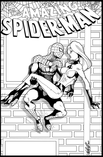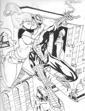 My modified costume of the web-swinger joining a lingerie photo shoot between MJ and Blackcat.Characters belong to Mavel comics.