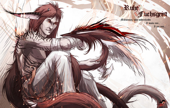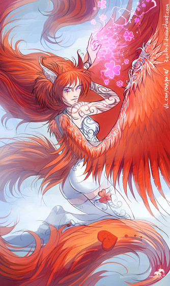 Great, very detailed! The fox seems to be falling instead in flying though You couldnt tie a /real/ foxes tail in ponytails like that, but you prolly alread know that and just liked it better this way x3