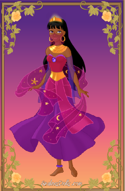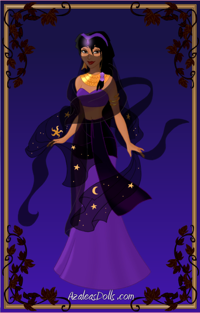 Goddess of love, joy, and beauty in ancient Egypt and often considered to be the wife of Horus and the mother of the pharaohs. She is the "Mistress of the West" and a daughter of Ra. Sometimes she is depicted as a cow or cow-headed woman. She is also identified with goddesses like Bast and Sekhemet, and sometimes she is interchanged with them. A popular ancient belief was that there were seven aspects of Hathor that appeared at the birth of a child to decide that child's destiny.I created this with the Heroine Maker from Azaleasdolls.