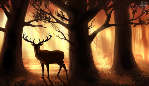 *w* Eeeee~ :music* The choice of colors, lighting and the mixtures of hues just-- *flails arms in retarded flapping motion* Violets, pinks, blues, greys, orange, white, green and I even see the faint paw prints you painted into the forward shadows near the tree on the left.