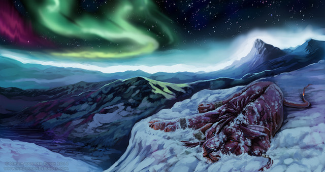 This is gorgeous! I love the colors and the subtle aurora in the sky. ^^