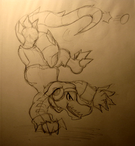 Railrunner, a monster/ anthro roller coaster from my story Twisted that's due out sometime this year. This pose just appeared in my head, after I drew it - it reminded me of the actual "The Beast" roller coaster logo XDWhen Railrunner emits a menacing smile - it's probably time to run.