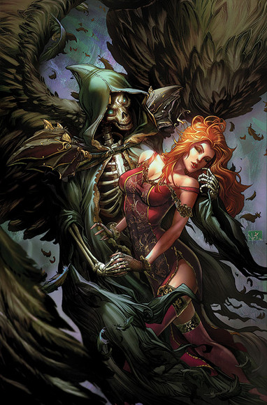 Love the contrast between this soft, pale, classic painting-looking woman and the dark and angular vampire. Excellent!