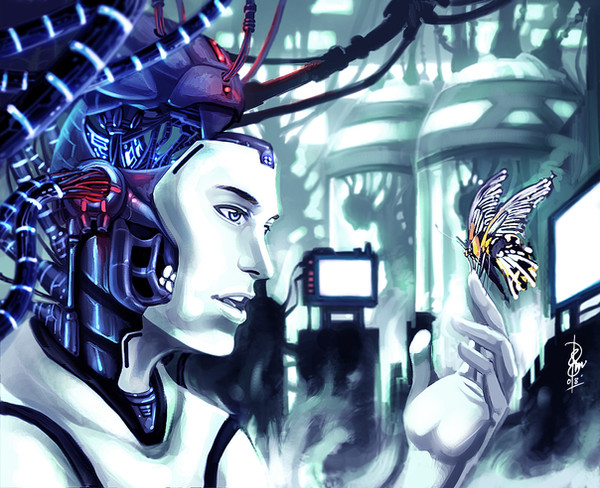 I also like that microchip pattern on the back of his head. It portrays dehumanization quite well, almost as if he was a computer "Blinded by tasks".