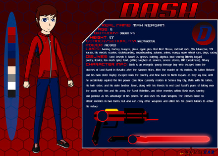 Blake "Fury" Marotta, the blue dragon brawler of the Red Dasher series.Here's the newly revised reference sheet to use on drawings, make sure to give me credit when using my characters.