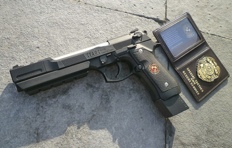My standard model Samurai Edge and very limited edition STARS wallet made to promote the RE movies based upon the game model with Chris ID card (can also get Jill's) The badge itself is metal and 'Special Tactics and Rescue Service' is embossed into the leather as per the game modelStill working on finishing my Wesker model, the customised rail is almost finished now just spraying it now