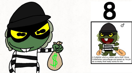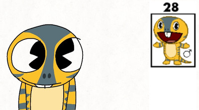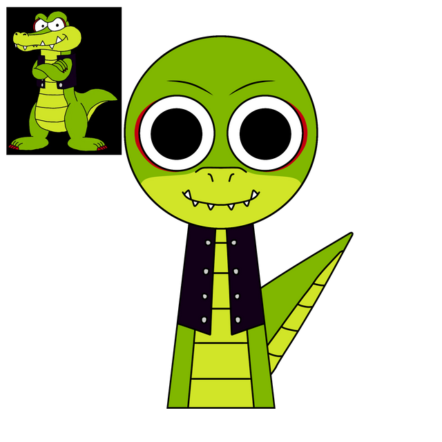 Liz is a Lizard,He is a mime,He Make up is on the back of his head,He rarely talks when he not miming,He likes to play,He has a crush on someone