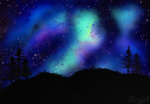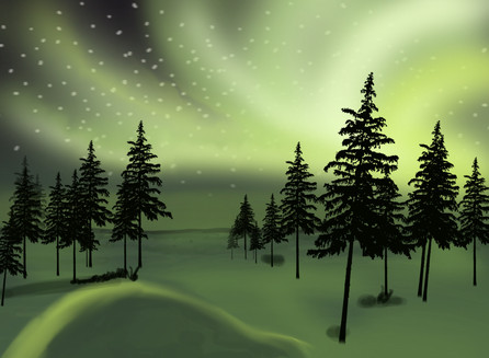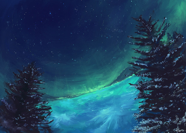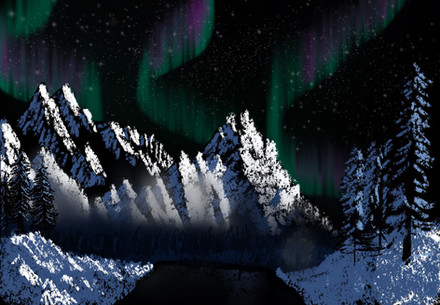 #aurora #cloudy #fantasy #forest #lake #landscape #night #wispy #kleki