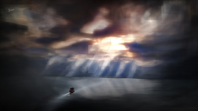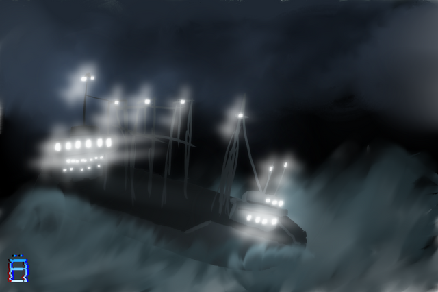 #battleship #cloudy #commission #horror #landscape #ocean #sea #ship #kleki