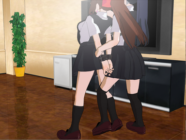 Yuna takes the poor suzu to the desk unaware that her sister is practically hopping because her legs are tied