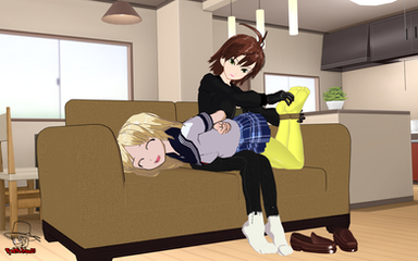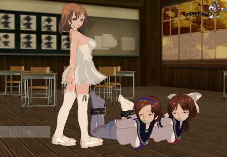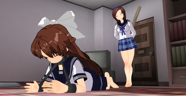 Suzu: Hmpppphhhh! (please one-san untie me, i promise i study)Yuna: Sorry for tying you up suzu, but you were getting lazy with your stduies and you know how it worries us.