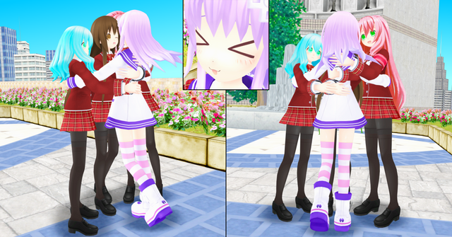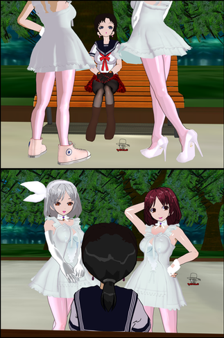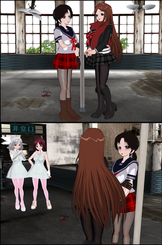 As Kumiko, Xylia and Mallow are finishing their news report, they are been watched by three schoolgirls who follow them, Nanaka, the schoolgirl reporter who admires Kumiko, Payne, the schoolgirl clone who is the young sister to Xylia and Miyu, someone who lives with Mallow and have a nice friendship together, and they can't wait to hug the reporters.