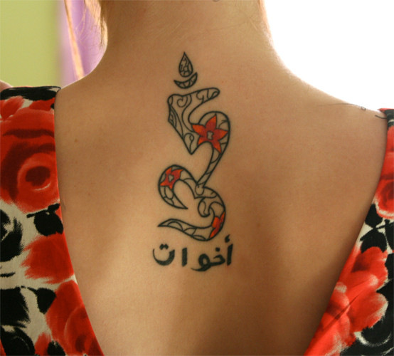 Thank you very much. The arabic means "sisters" and the symbol is the hindu om or aum