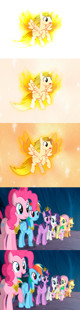 They aren't married btw since Fluttershy doesn't have the ring around her. Also Starlight & Sunburst are married too btw. Starlight has a ring aroun her.