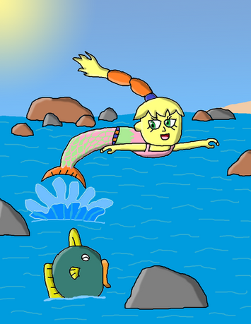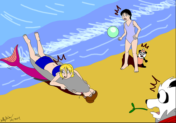 So Hazel turned herself into a dolphin girl, Maria into a beautiful mermaid and they both turned Michelle into a beachball to play with!