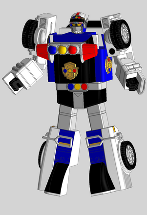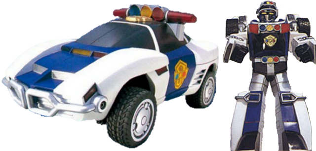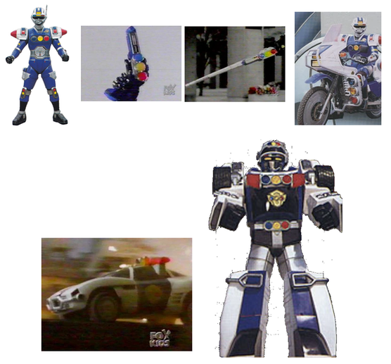 The White Turbo Power Ranger or White Racer with her Police Morpher, White Police Zord and Police Megazord.Related content