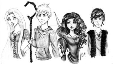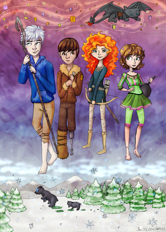 I could see this being turned into a DreamWorks fighting game or something, give hiccup toothless based attacks, jack uses his frost powers, Merida starts sniping with her bow, and Rapunzel starts thwacking people with a cooking utensil. I can see it now 'DreamWorks Brawl: Journey of the Big Four'