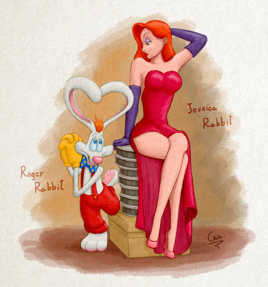 This was an old sketch I found on my computer and thought I would finish it. This is my first attempt at Roger and Jessica Rabbit.Hope you guys and gals like it.