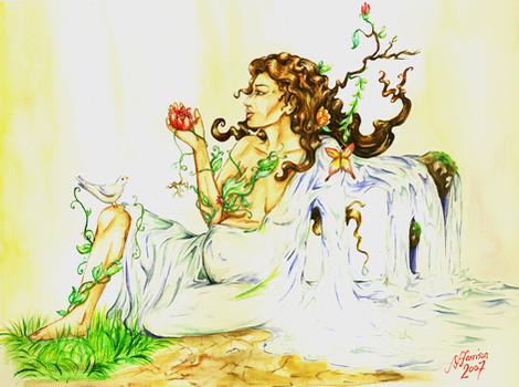 This is so beautiful. I love all the shades of green, and how her hair looks sort of like wheat. Nice job.