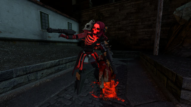 In life, Riya was an ordinary pyro fighting in the Great Gravel Wars. Though on the 10th October one year, she was killed at Hightower during a spooky match. She fell down into the eternal pits and it was believed that she was forever gone and that this was the end of Riya's story. However, she awakened to the world of the Deyro's (demonic pyros who work with Merasmus now and then) where she was given to choice to be reincarnated as a Deyro and have the added ability to drink from the well of immortality, or be thrown into the void of nothing. Fearing spending the rest of her after life in a world of nothing, Riya accepted and since then has been one of the Deyro's most proud warriors. Being able to utilise possession, blood magic and able to put curses on living beings.