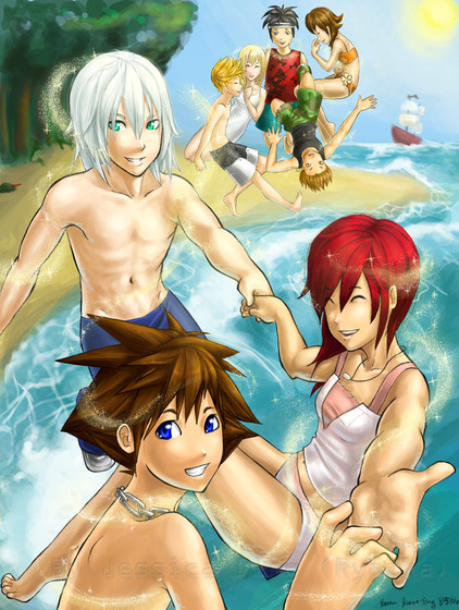 My sister wanted me to draw her kingdom hearts. It is my first attempt to draw riku and sora so I had funCharacters belong to Disney