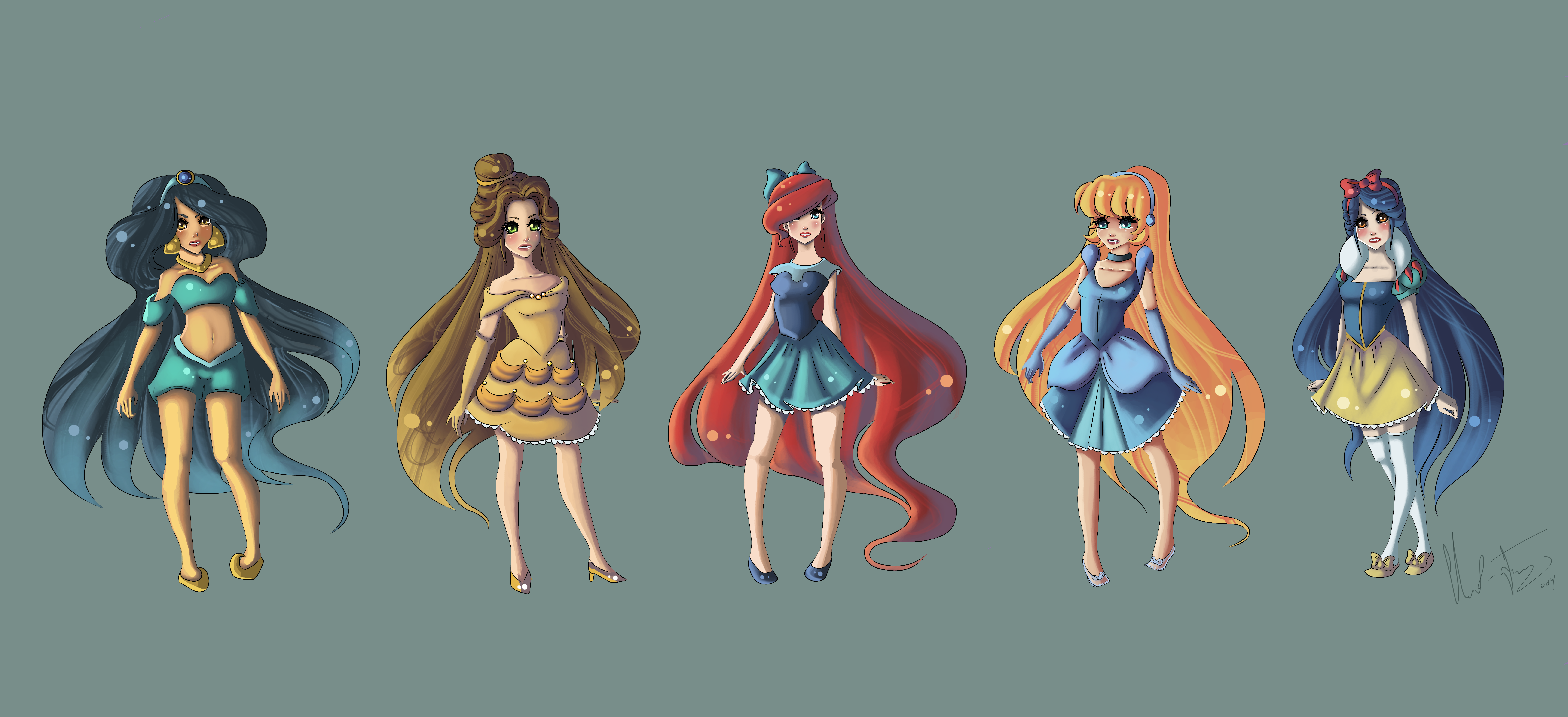 An interesting style. I think Jasmine is the prettiest character in this drawing.