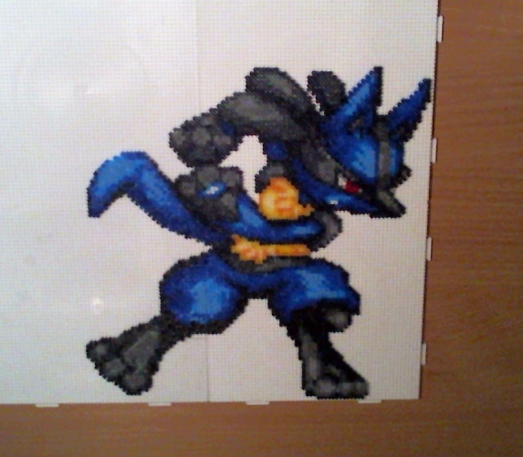 This is my brown-eared Riolu toy. I know it's not shiny.. sorry, but I only had one shade of gray and I had to switch for brown, but it still looks okay. This is my Riolu toy from my Pokemon Perler Bead Project.Pokemon is owned by Nintendo, this artwork is mine.
